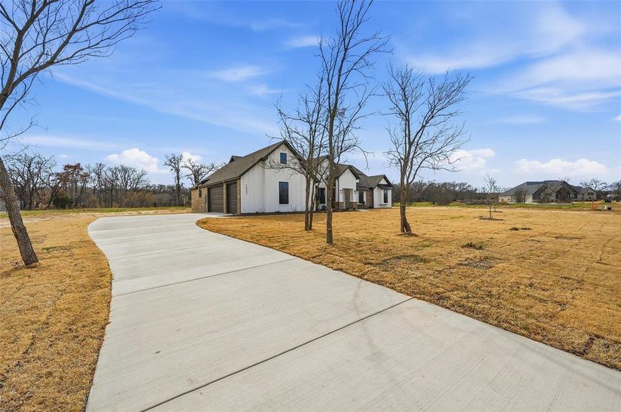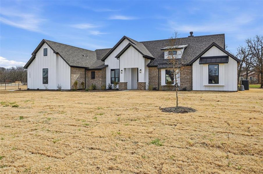 Open concept floor plan. 4 bedroom or 3 plus study with 2.5 baths, and an oversized 3 car garage with 8' garage doors. Wood burning fireplace with vaulted ceiling with beams in family room. Split bedrooms, utility room access to master. Silver Sage Farms is a charming community nestled in the heart of Parker County. Fiber Optic internet is included until 2029 at no charge. Shops welcome, up to one horse and 6 chickens. Up to $10k seller incentive - see home for details