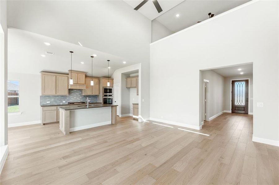Contact Community Manager for incentives! New & Never Lived In! Move-In Ready, this stunning 5 bedroom, 4 bathroom, two-story home from Bloomfield Homes offers incredible space, stylish upgrades, and smart design throughout — all set on an oversized homesite with an impressively large backyard. From the outside, the brick and stone elevation creates timeless curb appeal, while the extended-depth 2-car garage provides extra room for storage or larger vehicles. A welcoming front entry sets the tone for what’s inside — where thoughtful details and open-concept living come together. Step into the main living area and you’re greeted with upgraded wood flooring that flows throughout all the main areas. The Family Room features a stunning tile-to-ceiling fireplace and plenty of natural light, making it the perfect gathering spot for relaxing or entertaining. The Deluxe Kitchen is a true centerpiece, equipped with double ovens, a 5-burner gas cooktop, and an oversized island ideal for cooking, serving, or simply hanging out. You’ll also find custom touches like a cabinet mud bench in the utility room for added function and style. Throughout the home, enjoy added comfort with natural gas heat, a tankless gas water heater, and upgraded patterned carpet in the secondary areas for a soft, stylish feel. This layout includes thoughtful spaces like window seats that add charm and extra cozy spots in key areas. Upstairs and down, you’ll find bedrooms and baths arranged for privacy and flexibility — perfect for families of all sizes. Step outside to enjoy a covered patio and that huge backyard — plenty of space for outdoor living, play, or future backyard dreams. Located in a welcoming community with a swimming pool and more on the way, the Violet III is where space, comfort, and style come together in a truly livable design. Come experience Bloomfield Homes Violet III for yourself at The Oaks, schedule your tour today!