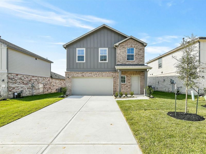 NEW CONSTRUCTION in Lakes at Black Oak! The Trinity delivers open-concept living with an eat-in kitchen overlooking the spacious family room. This two-story home features upgraded Silestone countertops & a covered patio for outdoor entertaining. The primary suite boasts a large closet, plus two additional beds upstairs with convenient second-floor laundry. Enjoy resort-style amenities including a splash pad, lake with trail, playground, pavilion & mini soccer field. Located in a highly-rated Magnolia ISD. Two-car garage included. Estimated completion January 2026. Experience modern living in this thoughtfully designed home with premium finishes in a community that offers something for everyone!