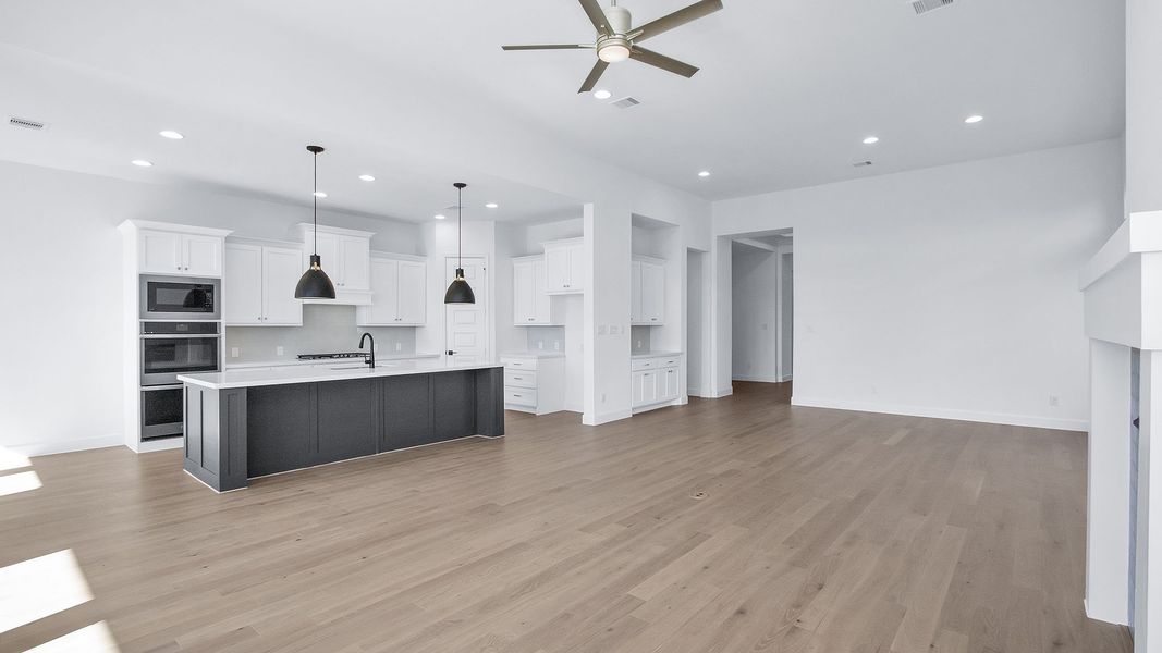 Welcoming entry framed by home office with French doors. Hardwood floors throughout living areas. Extended entry flows past a media room with French door entry. Open family room with a wood mantel fireplace and wall of windows flows into the dining area. Island kitchen features a corner walk-in pantry, double wall oven, 5-burner gas cooktop and extends to the morning area. Secluded primary suite with wall of windows. Primary bathroom offers a French door entry with dual vanities, freestanding tub, separate glass enclosed shower, a linen closet and two walk-in closets. Secondary bedrooms with walk-in closets. Two full bathrooms and a half bathroom complete this design. Covered backyard patio. Utility room and mud room just off the three-car garage.