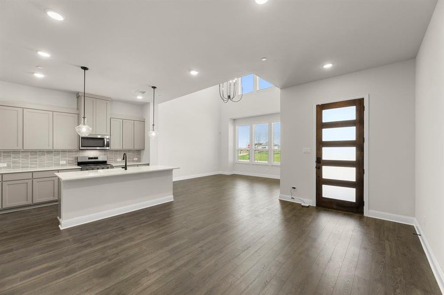 - KitchenTwo-Story Great RoomDining RoomFamily RoomOpen Concept FloorplanPrimary Bedroom Upstairs