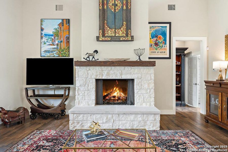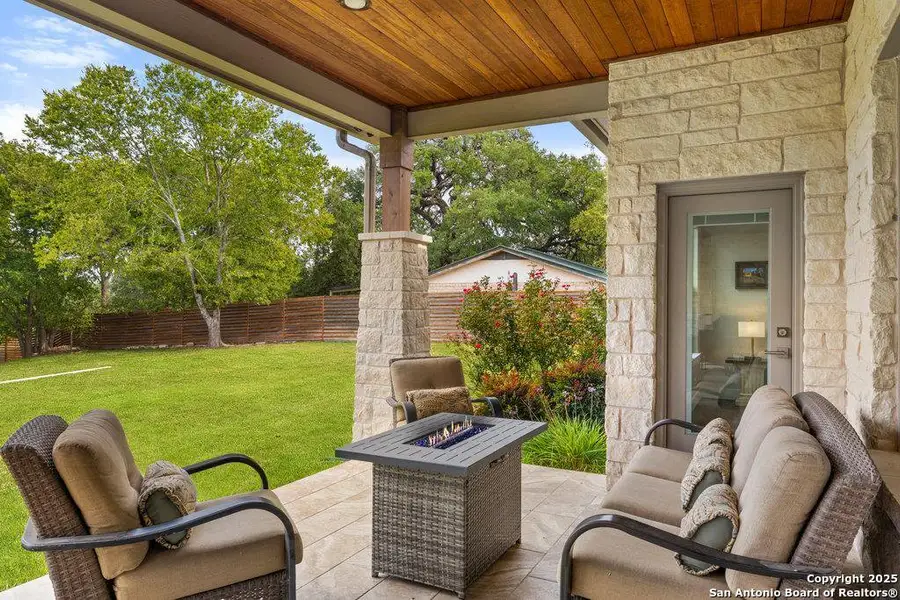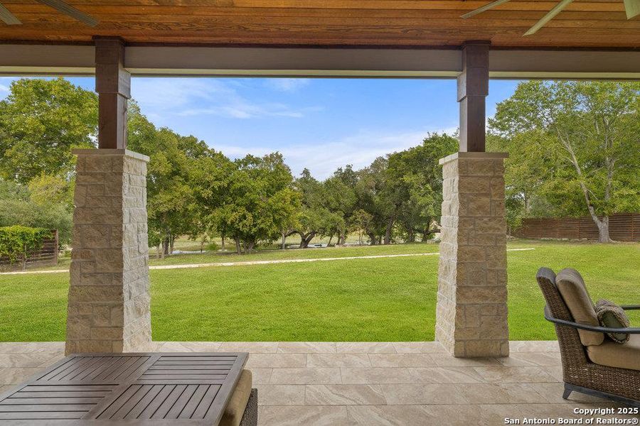 Nestled on nearly an acre along the serene Blanco River, this 6-bedroom, 4-bath residence is a rare offering of timeless Hill Country architecture paired with modern sophistication. Completed in May 2023, the home showcases enduring limestone construction, a sleek metal roof, and a private gated entrance for both elegance and security. Step inside to soaring, light-filled spaces designed for both grand entertaining and quiet retreat. Thoughtful details abound-from enhanced window treatments and energy-efficient climate systems to designer lighting and premium water filtration. The kitchen is appointed with touch-activated faucets, a built-in microwave drawer, and instant hot water, blending convenience with refined style. Smart technology seamlessly integrates into daily life with whole-home surge protection, Wi-Fi-enabled controls, and a comprehensive security system with cameras overlooking both the property and the riverbank. Outdoors, expansive covered living areas invite year-round enjoyment, complete with a stone patio and propane connections for outdoor cooking. A three-car garage with EV charging capability enhances both function and lifestyle. Set against the natural beauty of the Blanco River, this home is more than a residence-it's a private retreat, crafted with every modern comfort for those who value quality, privacy, and the best of Texas Hill Country living.