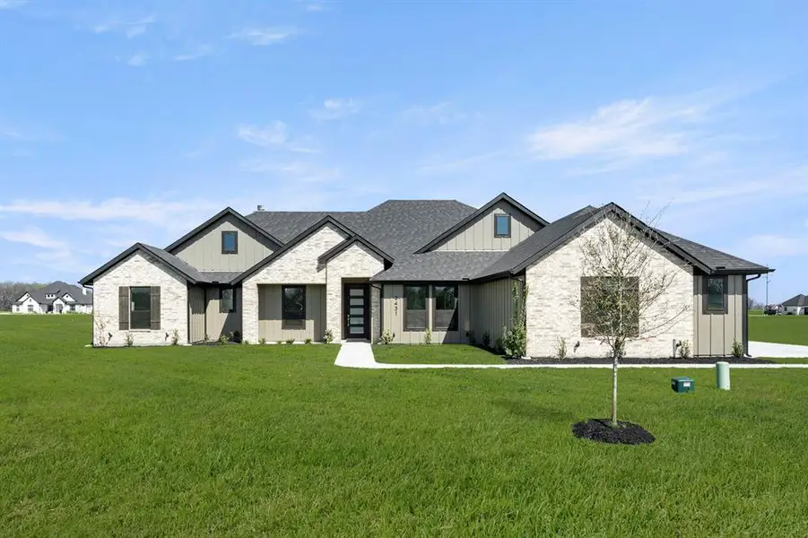 MLS# 21201040 - Built by Impression Homes - Ready Now! ~ This stunning single-family residence in the Estates of Palmer offers an impressive 2,809 square feet of living space, thoughtfully designed for modern living. Built in 2025, this traditional-style home features 4 spacious bedrooms and 3 full bathrooms, ensuring ample space for comfort and privacy. The open layout includes a cozy living area with a fireplace, and a dining space, perfect for gatherings. The gourmet kitchen is equipped with an island and pantry, catering to culinary enthusiasts. Enjoy the convenience of a smart home system and generous walk-in closets. Outside, a covered patio provides a serene space to unwind. Set on an expansive lot within the desirable Palmer ISD, this property is a true gem, ready for its new owners. 3-car garage and central heating and cooling complete this exceptional home.