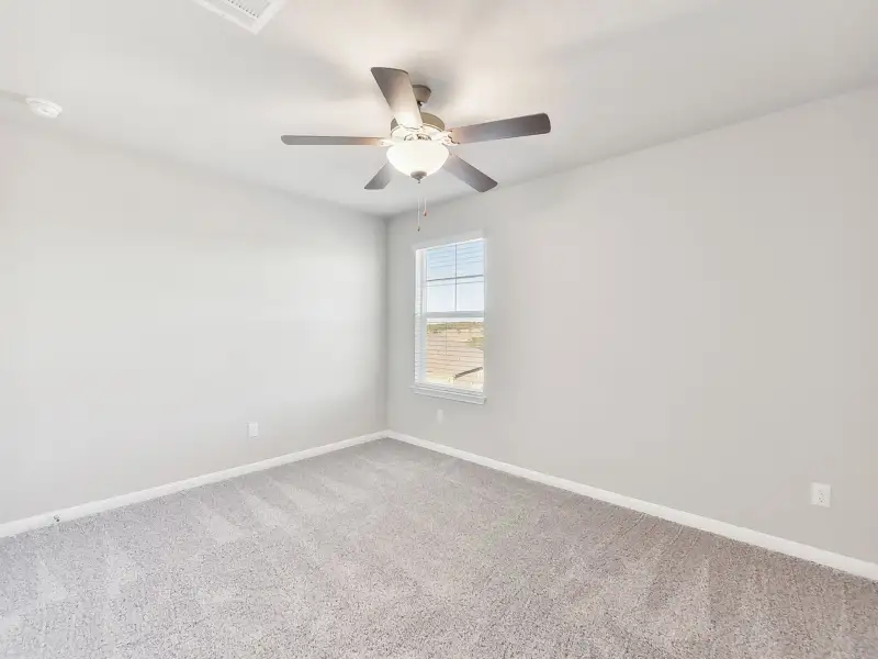 Enjoy movie dates in the Frontier's second-story game or media room. Gray cabinets with marble-look white quartz countertops, warm beige EVP flooring, and multi-tone taupe carpet in our Radiant package.