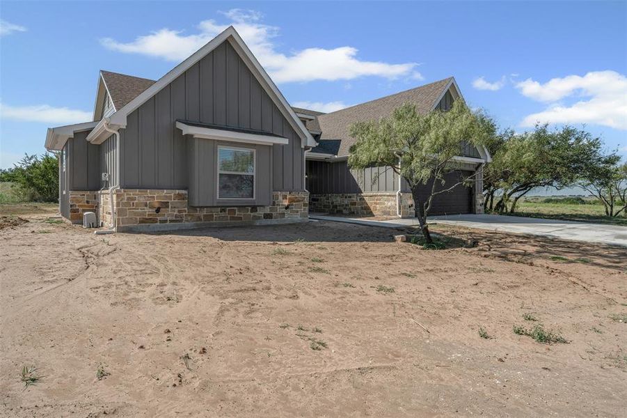 You can see for Miles from this property! Open Concept vaulted living space with oversized picture windows looking onto the back covered patio. Right off the living room you will find the dining area with glass sliding doors that lead out to the mature oak trees offering shade and the perfect space for a future open patio to grill out and enjoy the scenery. Master En Suite is light filled and spacious as is the master bathroom and Large Walk in Closet. Beds 2 and 3 have their own dedicated hallway and bathroom beautifully styled with architectural details displaying its charm and character. This home is full of function and finishes. Full Granite backsplash in the kitchen. Plenty of Kitchen Countertop space makes for a great working kitchen with built in efficiencies and storage. Large Window over the kitchen sink is the cherry on top. Separate designated laundry room where the Builder finished out with utility with cabinetry and storage. As you enter then home from the garage there is a custom mudroom locker cabinetry piece. This home would be great for any season of life. Turn Key property New Construction Comes with a Builder 1 Year Warranty and a 10 year third party structural warranty. Sod and Landscape Package included.
