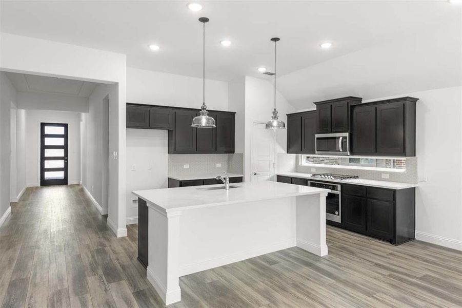 - DishwasherMicrowave OvenDisposalGas CooktopGranite countertopKitchen IslandElectric Oven