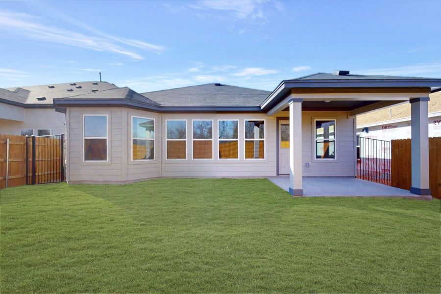 Walking up to this home you will notice the large covered porch. After entering this home, you are immediately greeted by tall ceilings and tons of natural light. Directly of the foyer you will find a secondary bedroom with a en-suite bath. Further down you will find an optional study. Off to one side you will find the laundry room, remaining 2 bedrooms, and an additional bathroom. At the end of the entry way you will find a large living room, dining area, and kitchen. The kitchen offers be a large center island perfect for entertaining. Off the back of the living room you will find access to the covered patio. In the corner of the family room you will see a private entrance to the owner’s suite with a bay window for more space and natural light. Towards the back of the bedroom you will enter the owner’s bathroom through optional double doors. In the owner’s bathroom you have a walk-in shower, with double sinks.