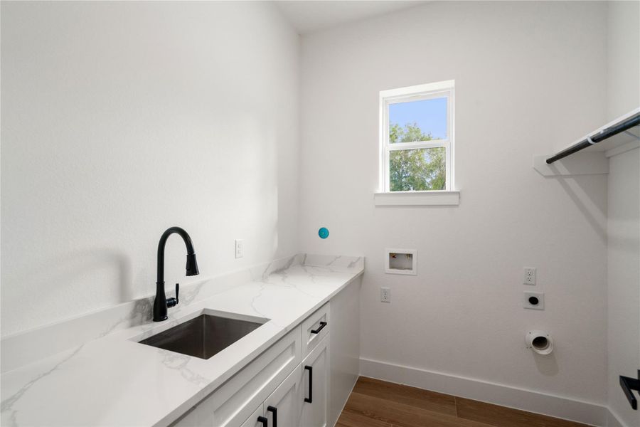 Additional highlights include a walk-in pantry, formal dining area, and a laundry room complete with a sink and folding countertop for convenience.