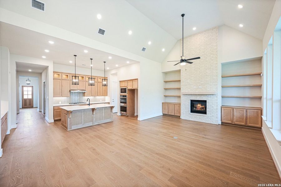One of Highland Homes newest communities, Mont Blanc, is located in Schertz. The Birchwood floor plan blends spacious design with modern comfort in a beautifully crafted single-story layout. An inviting open concept living area forms the heart of the home, where soaring high ceilings and abundant natural light create an airy, welcoming atmosphere. The family room features a striking fireplace that anchors the space and flows seamlessly into the gourmet kitchen and dining area-perfect for gatherings and everyday living. Designed with indoor-outdoor living in mind, the Birchwood includes an extended outdoor living area, ideal for relaxation, dining, or entertaining. The private primary suite is a true retreat, enhanced by a charming bay window that adds both elegance and extra space. The luxurious primary bath that features a freestanding tub and walk-in closet complete the suite's tranquil feel. With four bedrooms and three and a half baths, this floor plan provides impressive flexibility-ideal for families, guests, or a home office setup. A three-car tandem garage offers ample storage and parking, accommodating vehicles, hobbies, or seasonal items with ease. The Birchwood combines thoughtful design, premium features, and effortless flow, making it a perfect choice for those seeking refined single-story living.