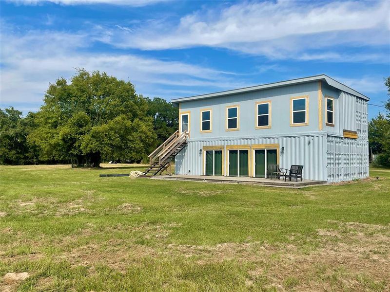 Modern shipping container home on almost 12 serene acres of land that are AG EXEMPT, keeping taxes low! This home offers 4 bedrooms, 2.5 bathrooms, and a large enclosed patio, perfect for watching the sunset and deer frolic. The oversized shop has 3 parking bays that allow for tandem parking in each, in addition to a covered carport, which allows for 6 more covered parking spaces. With no known restrictions, this property offers the potential for a homestead, multi-family compound, and even short-term rentals as it is conveniently located near the Scuba Ranch and Establishment Barn wedding venue. Schedule your showing today!
