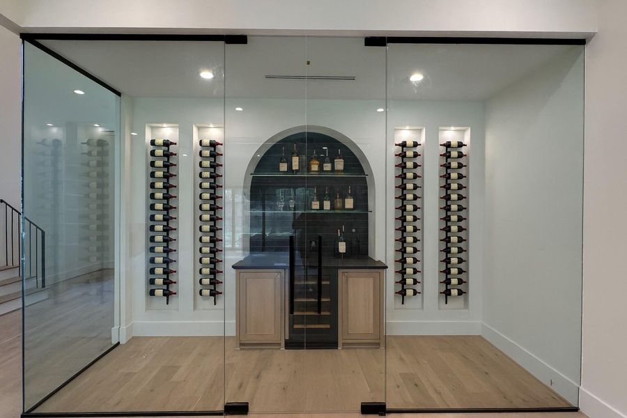 New Construction in Spring Branch with quick access to I-10. Exceptional new build featuring a large block stone exterior with soft creamy grey siding. This 5-bedroom, 5-bath home blends ranch and french country-inspired architecture with a clean, contemporary interior. The first floor offers 11’ ceilings, a private study, white oak accents throughout, and an open-concept kitchen with DOUBLE waterfall islands, gray cabinetry, 60” panel-ready refrigerator, plastered vent hood, and oversized pendant lighting. The living room includes a 16’ wide 4-panel sliding glass door and a gas fireplace with a custom surround. Downstairs primary suite features a spacious layout and luxurious finishes. Upstairs includes four bedrooms, a large game room, media room and gorgeous staircase and railings. Additional features: designer flooring and countertops, pre-wired speakers on the first floor, new fencing, full irrigation, and upgraded flatwork. Bright, open layout with abundant natural light.