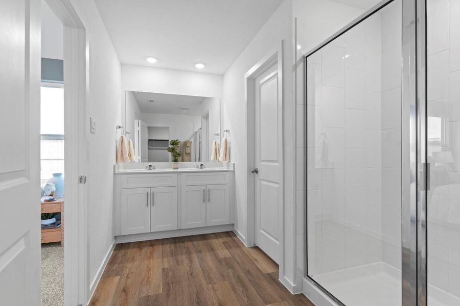Amazing 1 story, 3 bed / 2 bath /2 car garage layout with an open concept and split bedroom privacy spread across 1535 sq ft! Welcome to our Diana floor plan in the beautiful Canterra Creek community! Step through the welcoming front porch into a bright foyer that flows effortlessly into an expansive open concept family, dining and kitchen perfect for everything from weekday breakfasts to weekend watch parties. The chef’s island kitchen boasts a walk-in pantry, generous prep space and direct sight lines to the living and dining areas, so you’re never far from the conversation. • 3 spacious bedrooms | 2 full baths • Secluded primary suite enjoys backyard views, dual sink vanity, oversized shower and large walk in closet. • Secondary bedrooms are tucked on their own wing with a shared hall bath—ideal for kids, guests or a home office.