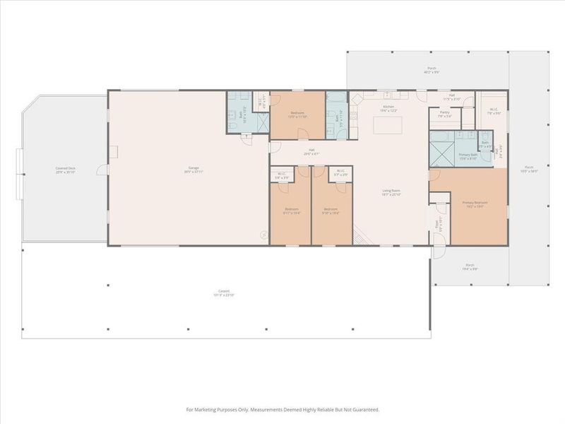 The spacious master suite features a barn door entry to a spa-like bath with a European wet room design: double shower heads, a luxurious garden tub, and an oversized closet ready to customize. On the opposite side, three additional bedrooms each boast oversized closets and share a guest bath with full wall marble tile, a deep tub, and dual sinks.