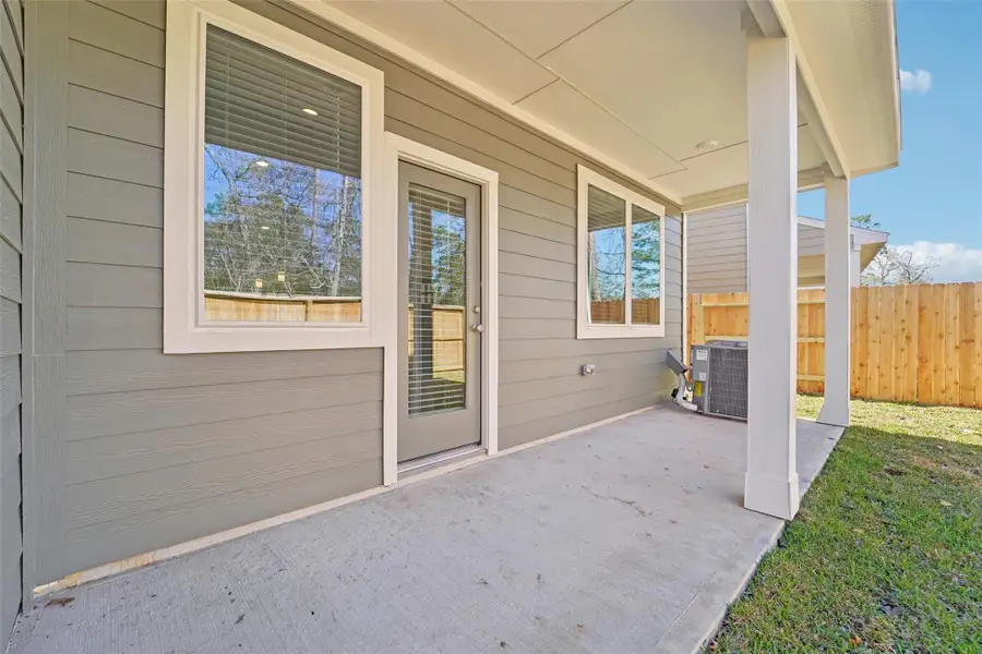 Brand new, energy-efficient home available by Jan 2026! An open concept allows you to prepare dinner at the Harlow's kitchen island without missing conversation in the great room. White cabinets with white quartz countertops and grey mosaic backsplash, grey tone EVP flooring and multi-tone carpet. Nestled in this gated boutique community, Pinewood Trails offers a lock and leave experience to enjoy the future lakes, trails and parks. Just minutes away from Lake Houston, premier shopping, dining, and entertainment, you won’t have to travel far. Each energy-efficient home also comes standard with features that go beyond helping you save on utility bills—they allow your whole family to live better and breathe easier too.