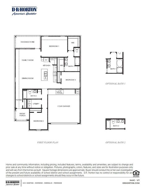 The Camden is a single-story home that offers 3 bedrooms, 2 bathrooms and 1,501 sq. ft. of living space. As you enter the long foyer, you will walk toward the dining area and open living space. The spacious kitchen overlooks the dining area and family room. The kitchen features stainless steel appliances, Granite countertops and a walk-in pantry. The family room is next to the kitchen and leads out to the large, covered patio. Bedroom 3 is located off the kitchen and is separate from the other bedrooms. The hallway off the kitchen leads you to bedroom 2, the hall bath and laundry room located close to the garage. The main bedroom, bedroom 1, is located off the family room and features a huge walk-in closet and large walk-in shower. The Camden also includes full yard professional irrigation and landscaping complete with Bermuda sod.