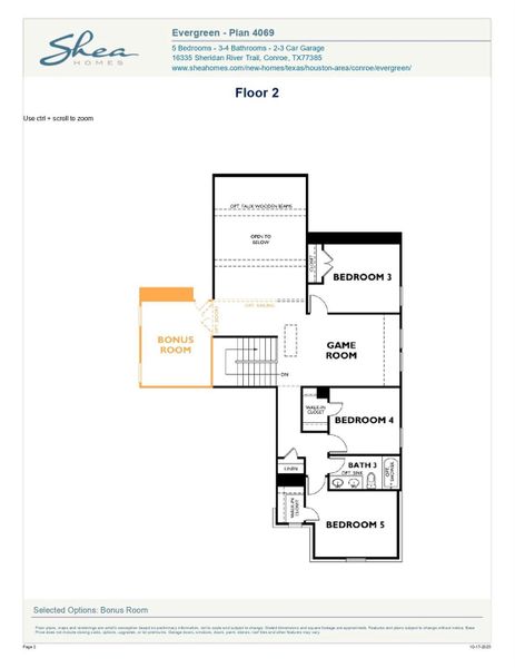 With a lofted game room open below, this flexible two-story layout works well for families. The deep primary WIC and the covered patio nestled between the great room and primary suite make the footprint feel luxurious. Features include classy French doors in the study and extended outdoor living for watching the beautiful Texas sunset. All new Shea homes are EnergyStar Certified and come with smart home technology, stainless steel gas appliances, and a one-year warranty. Evergreen is Shea Homes Houston's largest master planned community, and combines gorgeous woodland landscapes with state-of-the-art amenities designed to bring families and neighbors together. Walk the winding trails, relax in the resort-style pool, and put down roots in a space that's all your own.