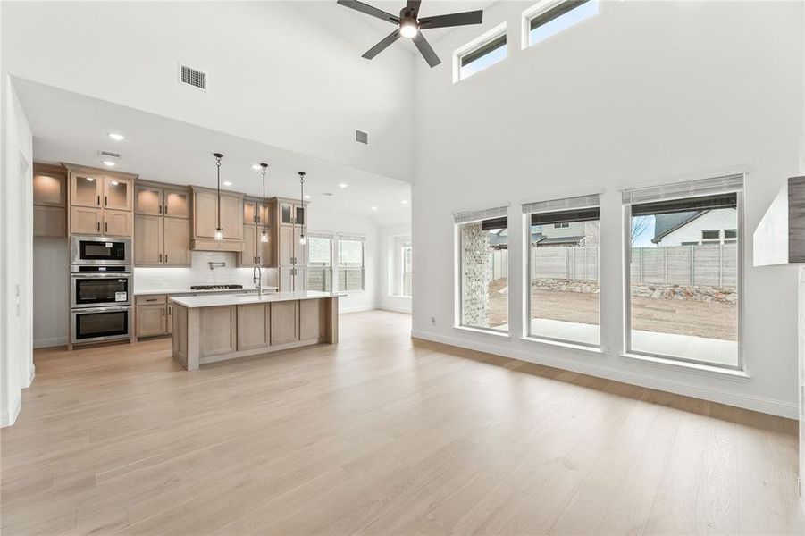 NEW NEVER LIVED IN! Ready to Close! Walk into this beautiful two-story Seaberry II by Bloomfield Homes. Featuring 5 bedrooms, 4 bathrooms, this spacious layout features an upgraded brick and stone elevation on a northwest-facing homesite, and a 2-car garage, with an impressive 8' front door leading into soaring ceilings and open-concept living. The Family Room boasts high ceilings and connects seamlessly to the custom Kitchen, which includes cabinets to the ceiling, quartz countertops, a double oven, pot filler, upgraded kitchen faucet, black hardware, and a dedicated pantry cabinet—all within a full gas kitchen. Three bedrooms are located on the first floor for convenience, including the Primary Suite, with two additional bedrooms upstairs along with a Game Room and Media Room for added living space. Stylish wood floors run through all common areas, while upgraded tile adds polish throughout the home. Patterned carpet adds comfort to the bedrooms and upstairs areas. The covered patio includes a gas stub for grilling, along with full gutters for added value. Multiple LED lighting upgrades and enhanced tile selections in the kitchen and baths elevate every space. Come visit this Seaberry II at Painted Tree in McKinney.