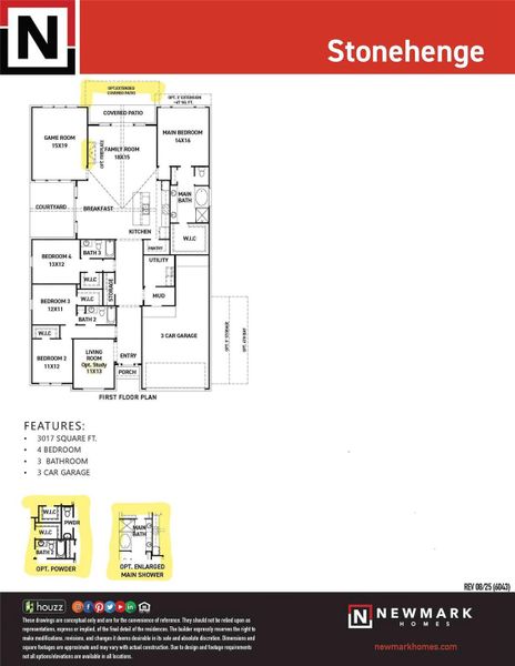 NEWMARK HOMES NEWEST ONE STORY- STONEHENGE. This complete one story home has it ALL. Study, Three car tandem. COURTYARD. Game Room. With TWO patios for entertaining in an open concept family/kitchen the gatherings will be extra special. This home is on a CORNER Styled lot so the COURTYARD has maximum exposure.