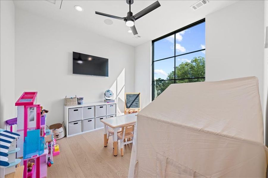 Upstairs boast two additional bedrooms with ensuite bathrooms and walk in closets. A game room and fully equipped media room prewired with a 7.1 Sonos Surround Sound and custom wet bar make for great movie nights with the family. A thoughtfully designed loft also provides a niche space to enjoy the morning sunrise or your favorite book.