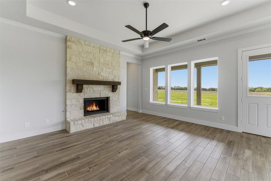 Ask us about our Trade-In Trade-Up Program, we can buy your home when you buy ours! The Magnolia is a one-of-a-kind floor plan with everything you need and more. With 4 spacious bedrooms, 3 full bathrooms and a powder bath, a 2- to 3-car garage and a whopping 3,233 square feet—this floor plan is one you wouldn’t want to pass up. Enter through the door at the charming front porch to find a gorgeous foyer with the most grand staircase you’ve ever seen. Past the stairs, you’re welcomed by the main living area—made up of the beautiful family room, inclusive dining room and chef-inspired kitchen full of appliances with a huge walk-in pantry, and a massive island for extra seating and counter space. The covered back patio is connected to the family and dining areas, and its size nearly takes up the length of the whole house—perfect for adding an outdoor kitchen and living area. The exceptional owner’s suite is found to the right of the family room, accompanied by an enormous bedroom with enough space for a king-sized bed and so much more. The owner’s bathroom contains two separate sinks and vanities with a spa-style tub in between, across from the luxurious walk-in shower. Past the bathroom, you have convenient access to the laundry room and two oversized walk-in closets—maximizing space for storage and wardrobes. On the left side of the front of the home lies a bedroom, two bathrooms, and a flex room with the ultimate amount of natural lighting—perfect for a study room with french doors. Upstairs, you’ll find two additional bedrooms and a bathroom, as well as a convenient loft area that opens up to the first floor of the home. This layout effortlessly combines private living areas with togetherness in the home, and there is no other floor plan out there that embodies an ideal dream home like the Magnolia does.
