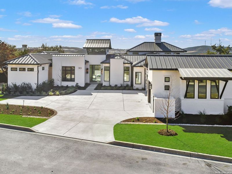 This brand-new custom construction by Uptown Homes in The Dominion features architectural design by ADesign's Gustavo Arredondo and interior selections by YADESIGN INTERIORS. Built with exceptional attention to detail, the home showcases refined finishes, custom ceiling treatments, and thoughtfully integrated architectural elements throughout. The chef's kitchen is outfitted with professional-grade stainless steel appliances and opens to a spacious great room with soaring ceilings, creating a seamless flow for everyday living and entertaining. The primary suite offers a spa-like bath and a large walk-in closet with extensive built-ins. Three additional guest bedrooms each feature private en-suite baths, and a generously sized game room provides added flexibility. Outdoor living is equally well-appointed, with a covered patio, full outdoor kitchen, expansive hardscaping, and a sparkling pool set within a private, resort-style setting.