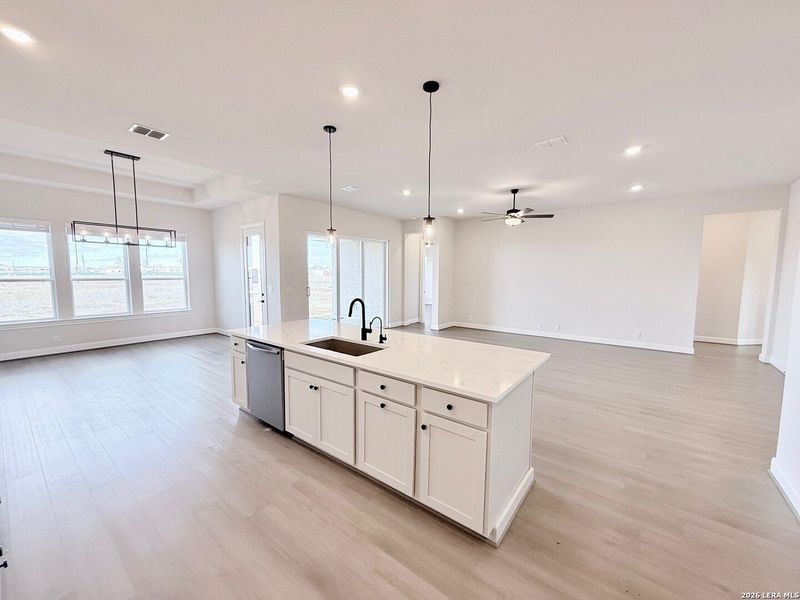 Welcome home to the beautiful single-story Northstar by David Weekley Homes, now available in Megan's Landing! This thoughtfully designed home offers elegant living spaces that make every day feel special. The gourmet kitchen is a dream for chefs and entertainers alike, featuring a gas cooktop, double ovens, cabinets extending to the ceiling, a spacious walk-in pantry, and a unique coffee/wine bar area-perfect for celebrating birthdays, hosting dinners, or preparing holiday meals together. Each secondary bedroom provides generous personal space and comfort, while the private Guest Suite is ideal for multigenerational living or weekend visitors with its walk-in shower and large closet. A flexible fifth bedroom can easily serve as a dedicated study or hobby room. The open-concept family room flows effortlessly onto covered outdoor gathering areas, offering a relaxing retreat for quiet evenings or fun-filled weekends. Sliding glass doors create an uninterrupted view of the backyard, enhancing the home's bright and airy feel. The Owner's Retreat is a luxurious escape featuring a Super Owner's Bath with a freestanding soaking tub and an upgraded walk-in shower enhanced by a rainfall showerhead. Elegant 8-foot interior doors add drama and sophistication throughout. Create lifelong memories in this stunning home that combines luxury, comfort, and style in Megan's Landing.
