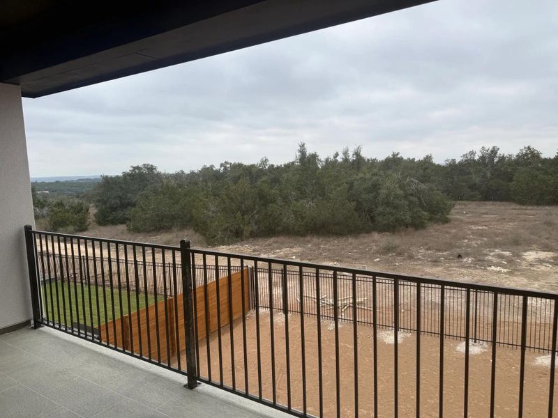 Features an upstairs balcony