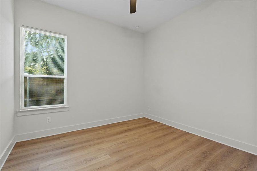 Builder is offering a stunning 2025 new build perfectly situated in one of Dallas’s most rapidly developing areas! This modern 4 bedroom, 2 bathroom home spans 1,919 square feet and combines style, comfort, and functionality. Ideally located near major highways, schools, parks, and Downtown Dallas, you’ll enjoy easy access to shopping, dining, and entertainment while still tucked away in a quiet, residential neighborhood. Step inside to an open floor plan designed for modern living. The spacious living room features a sleek electric black porcelain tile fireplace and ceiling fan, creating a warm and inviting atmosphere. The kitchen is a true showpiece complete with a quartz island, built-in wine shelf, walk-in pantry, and a connected dining area that’s perfect for hosting family or friends. The primary suite is a relaxing retreat with a stylish accent wall, ceiling fan, and a luxurious en-suite bathroom featuring a double vanity, walk-in shower, stand-alone soaking tub, and a generous walk-in closet. The additional three bedrooms are thoughtfully separated from the primary suite, giving guests or family members their own private section of the home. Outside, enjoy a massive backyard ideal for entertaining, gardening, or simply relaxing on a Texas evening. This home offers the perfect blend of elegance, space, and convenience in one of Dallas’s most exciting neighborhoods.