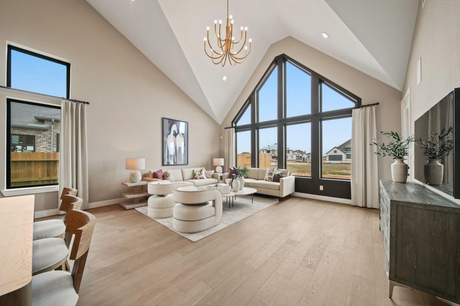 The Newton plan by Newmark Homes offers Grand 2 story entrance with Dramatic Circular Staircase showcasing Clerestory windows.