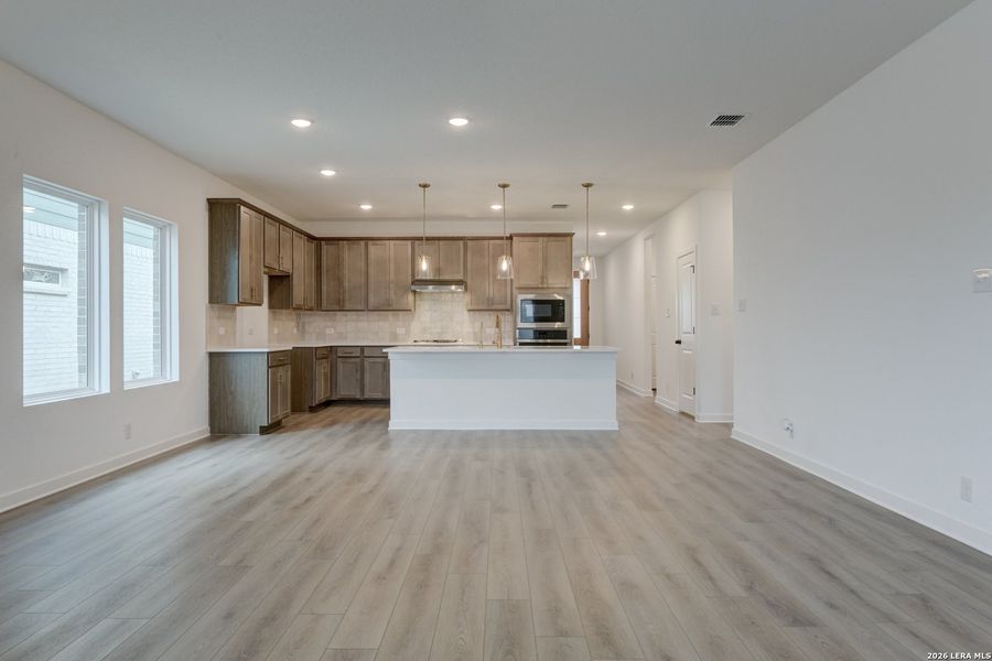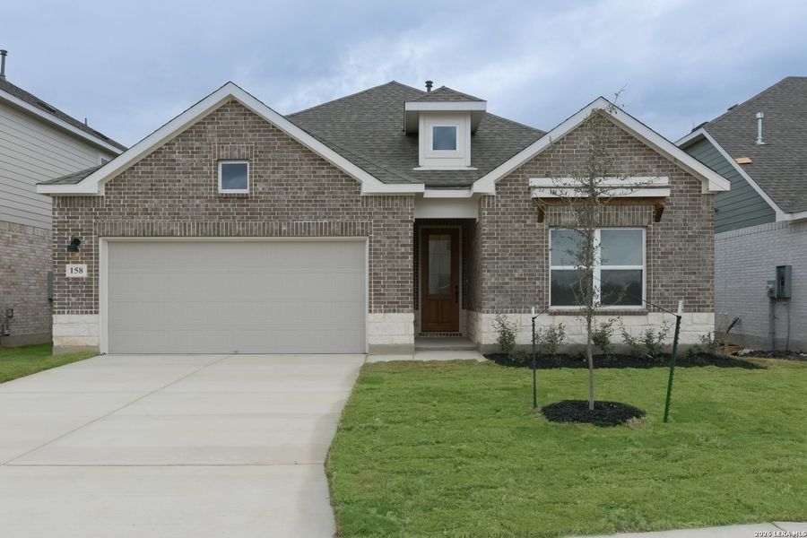 Step into this thoughtfully designed one-story home where comfort, style, and functionality come together in perfect harmony. Natural light pours through oversized windows, highlighting the open-concept layout that connects the gourmet kitchen, breakfast area, and spacious family room. The kitchen is the heart of the home, featuring a large center island ideal for casual dining or entertaining, a walk-in pantry for ample storage, and designer finishes that elevate every meal, from busy weekday breakfasts to relaxed weekend gatherings. The family room is bright and welcoming, with three expansive windows framing views of the covered patio, making it the perfect spot to enjoy morning coffee, unwind in the evening, or host friends and family outdoors. The private primary suite offers a true retreat with a spa-inspired bath, dual vanities, an oversized shower, and a generous walk-in closet designed to keep everything beautifully organized. Between the two secondary bedrooms, a versatile sitting room provides a space for a study nook, creative projects, or a play area, adaptable to your family's needs as they grow. Thoughtful design extends to every detail of the home, from the balance between shared and private spaces to the flow of natural light throughout. Whether enjoying quiet evenings at home, entertaining guests, or simply appreciating the elegant finishes and thoughtful layout, this home blends comfort, sophistication, and functionality in a way that enhances every aspect of daily life. This home is part of our Laguna Collection-inspired by wide horizons and slow, easy days. Sun-bleached neutrals blend with earthy textures to create a space that feels open, airy, and beautifully relaxed. Modern simplicity finds harmony in nature-inspired elements, giving you a home where time stretches out, and everyday life feels just a little more serene. This home is located in Nopal Valley, a welcoming community in West San Antonio. Spacious homesites offer room for outdoor living, and the neighborhood will feature a pool, pavilion, and playground for family fun and relaxation. Inside, the home is thoughtfully designed with open layouts perfect for entertaining or enjoying quiet moments. With convenient access to shopping, dining, Medina Valley ISD schools, and Lackland Air Force Base, it combines modern comfort and functional design in an ideal location.