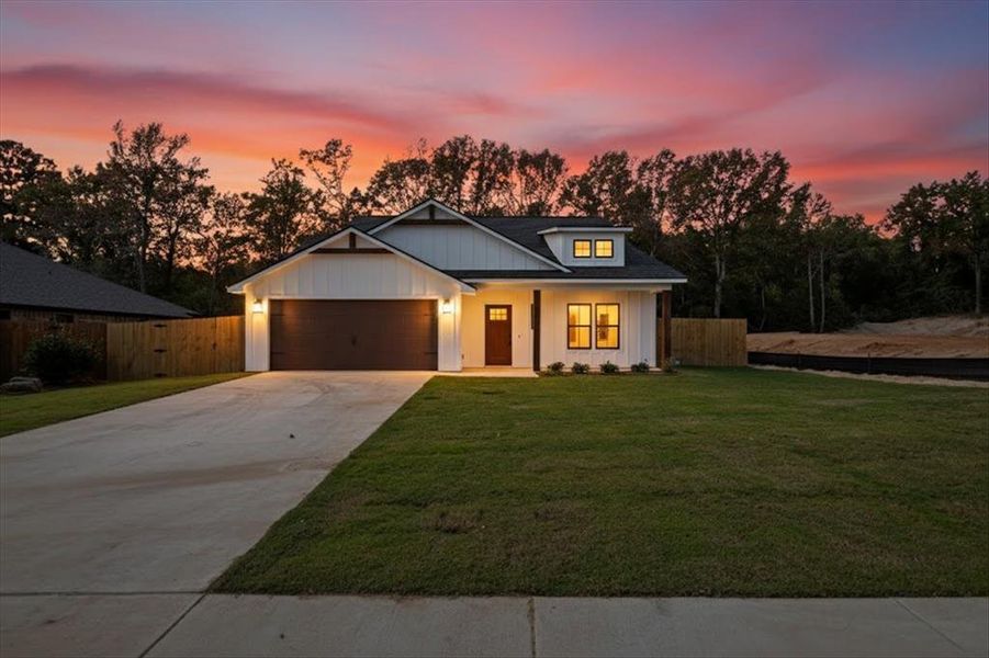 Welcome to your dream home in the highly sought-after Crossing at Mission Ridge neighborhood in Lindale ISD! This stunning new construction is packed with upgrades galore from the elegant tile flooring throughout the main living areas to the tiled walk-in shower and thoughtfully designed layout. The kitchen is a showstopper, featuring a stylish color palette, abundant cabinet space, granite countertops, and modern black accent pendant lights for a touch of sophistication. The primary suite offers a beautifully appointed bathroom and a master closet that connects directly to the laundry room for everyday convenience. With 4 bedrooms and 2.5 bathrooms, there’s plenty of room for everyone to live and entertain comfortably. Step outside to enjoy the covered back patio overlooking a privacy-fenced yard with a peaceful wooded view making a perfect retreat after a long day. The neighborhood offers sidewalks and a scenic walking trail around a pond, ideal for morning strolls or evening walks. This one checks all the boxes, style, comfort, and location. Don’t miss your chance to make this beautiful home yours!