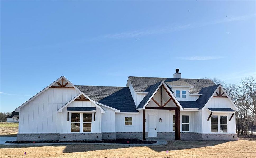 MOVE IN READY!! Welcome to the new STONE CREEK RANCH Subdivision. Enjoy peaceful country living on almost 2 acres with a private well—no water bill and no HOA! This MODERN CRAFTSMAN FARMHOUSE combines timeless curb appeal with a functional open-concept layout designed for today’s lifestyle. A wide covered front porch opens to a vaulted living room with a cozy fireplace and access to a spacious rear porch—perfect for entertaining or relaxing outdoors. The kitchen features a large island, walk-in pantry, and open flow to the dining area. Two secondary bedrooms share a full bath, while the private primary suite includes a tray ceiling, spa-style bath with soaking tub, dual vanities, and a walk-in closet with direct laundry access. A mudroom entry from the two-car garage adds everyday convenience. Additional highlights include spray foam insulation and a Home StrucSure Warranty provided by the builder. (Days on market reflect construction process from ground up) Landscaping package & irrigation are included. (Subdivision Roads will eventually have final chip seal completed, (no set date for that yet)