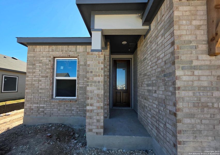 This beautifully designed one-story home blends modern comfort with timeless style, offering an inviting layout perfect for both relaxation and entertaining. The heart of the home is the gourmet kitchen, featuring sleek quartz countertops, upgraded cabinetry, built-in appliances, and a walk-in pantry that provides ample storage for everyday essentials. The kitchen opens effortlessly to a spacious family room, where large windows fill the space with natural light and frame peaceful views of the backyard, creating an ideal setting for gatherings or quiet evenings at home. A closed study near the front of the home offers a quiet space for work or focus, while the secluded primary suite provides a tranquil retreat complete with double vanities, a separate shower, and a generous walk-in closet. Two secondary bedrooms, each with their own walk-in closets offer comfort and flexibility for family, guests, or a creative hobby space. Step outside to a covered patio that extends your living area outdoors, perfect for enjoying morning coffee or weekend barbecues. Thoughtfully planned and filled with elegant finishes, this home combines functionality and warmth in every detail, making it an ideal place to call home. This home is part of our Sapphire Collection-bold, vibrant, and brimming with personality. Bright whites and deep blues mix with layered patterns and textures for an unexpected yet stunning effect. It's a style built for those who love to make a statement, host with flair, and live with unapologetic confidence. Sapphire delivers energy, elegance, and a sense of fun that's unmistakably unique. This home is located in Saddlebrook Ranch, a master-planned community in the charming city of Schertz-named one of CNN/Money's top small towns. Enjoy easy access to I-35, premier shopping, dining, and Randolph Air Force Base. Planned amenities include a sparkling pool and playground, perfect for family fun. With the highly regarded Schertz-Cibolo-Universal City School District nearby, Saddlebrook Ranch offers the ideal blend of community, convenience, and small-town charm.