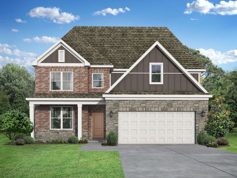 Discover The Ash O at Meadow Ridge Estates! Inside The Ash’s handsome exterior lies a coveted, open floor plan. The Foyer welcomes guests past an elegant Dining Room and into a stunning Family Room. The rear Porch offers a calm respite, and the first floor Owner’s Suite highlights a massive walk-in closet. On the second floor, the plan offers two additional bedrooms and a generous Bonus Room – perfect for game nights. Offerings vary by location, so please discuss standard features and options with your community’s agent. Renderings may be photo-realistically enhanced for visualization purposes.