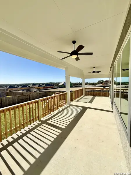 Elevated Hill Country Living on a Corner Cul-de-Sac | Rymer by David Weekley Homes | Meyer Ranch, New Braunfels Located on one of the highest elevation streets in Meyer Ranch, 1308 Spotted Jaguar is a beautifully designed Rymer floor plan set on a nearly quarter-acre corner lot tucked into a quiet cul-de-sac street. From the extended covered back patio, enjoy peaceful Hill Country views that make this homesite truly exceptional. The charming stone and stucco exterior delivers standout curb appeal, while inside, an abundance of natural light fills the open-concept living spaces. The gourmet kitchen is the heart of the home, featuring two-toned cabinetry, a striking center island, quartz countertops, and sleek satin-finished lighting fixtures that add a modern, designer touch. The spacious family room flows effortlessly into the dining and kitchen areas, creating an ideal setting for entertaining or relaxed everyday living. Luxury plank vinyl flooring runs continuously throughout the main living areas and extends into the Owner's Retreat, enhancing both style and durability. The Owner's Suite offers a private sitting area and a spa-like bath complete with a super shower - a true retreat at the end of the day. Bedroom 4 includes its own en-suite bath with a full-size walk-in shower, making it perfect for guests or multi-generational living. With no carpet in the home except the bedrooms, a 3-car garage, and thoughtful design throughout, this home balances comfort, elegance, and function beautifully. Situated in Meyer Ranch, one of New Braunfels' most sought-after master-planned communities, residents enjoy resort-style amenities, scenic trails, Hill Country views, and access to Comal ISD, all just minutes from shopping, dining, and outdoor recreation. If you're searching for a luxury new construction home in New Braunfels, Texas with elevated views, an oversized corner homesite, and designer finishes, 1308 Spotted Jaguar is a rare opportunity. Schedule your private tour today.