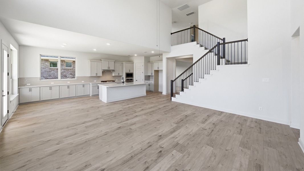 Light, openness, and effortless luxury define the Brown floor plan, where timeless design meets modern comfort. From the moment you step into the soaring two-story family room, you’ll be drawn in by a sense of warmth, volume, and sophistication. Tall windows invite natural light to pour in, creating a bright, inviting space that instantly feels like home. At the center of it all is the sunlit kitchen, a beautifully functional space featuring an oversized island and an eat-in dining area that makes everyday meals and entertaining equally enjoyable. Whether you’re preparing a holiday feast or grabbing a quick breakfast, the flow and layout make it easy to stay connected.