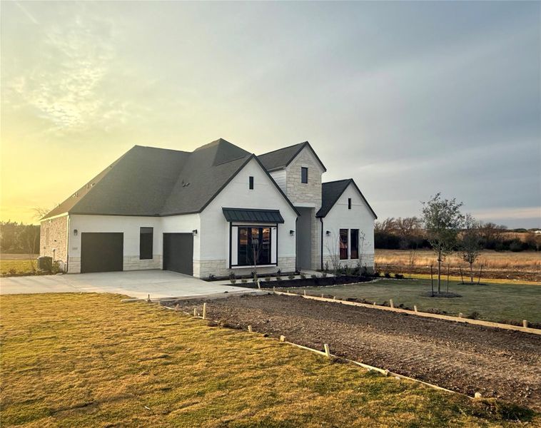 Welcome to GFO Home’s premier Bluebonnet Floor Plan from our brand new Feathergrass exclusive Lone Star Series. This expansive One-Story home features 4,046 sf, sits on One-Acre, and offers spacious living with 4 Bedrooms, 4.5 Bathrooms, and 3-Car Garage. Highlights of this grand home include an Open Grand Family Room with an Electric Fireplace and soaring Ceilings, 15’ ft 3-Panel luxury Glass Slider Doors leading to a large Covered Patio with Gas Drop for future grill, perfect for entertaining. Indulge in the Luxury Gourmet Chef’s Kitchen with large center island, stunning GE Cafe Series Appliances including a Cafe 48” - 6 Burner with Griddle Gas Range and Double Ovens, Cafe Warming Drawer, and huge built-in stainless steel side by side refrigerator/freezer & oversized Walk-In Pantry, and attached Breakfast Room. Enjoy a Private Study or Bonus Room, Formal Dining Room for gatherings, a separate Media Room for entertainment, and Laundry Room with Built-in Cabinets Upper & Lower cabinets and sink with decorative tile and garage entrance. Relax in the spacious & luxurious Primary Bedroom, looking out to the scenic backyard with an Upgraded Spa-inspired Primary Bathroom featuring his and hers Walk-in Closets, a designer Free-Standing Soaking tub, and Large Walk-In Frameless Glass Shower with bench seat. With 3 more additional bedrooms, 2 more full bathrooms, & Powder Room, this remarkable Bluebonnet Home by GFO Home will have you experiencing high-end living at its finest, in the new luxury Feathergrass Acreage Community. Enjoy the small-town charm of Georgetown, with it’s Historic Downtown voted Texas’ Most Beautiful Town Square. There is so much to explore with lovely restaurants, shops and regular. Minutes away from local conveniences like the brand new HEB now open in Parmer Center, schools, Lake Georgetown, and more! Zoned to Georgetown ISD with top rated Ford Elementary, Benold Middle School, and Georgetown High School. Visit the GFO Feathergrass Model Today!