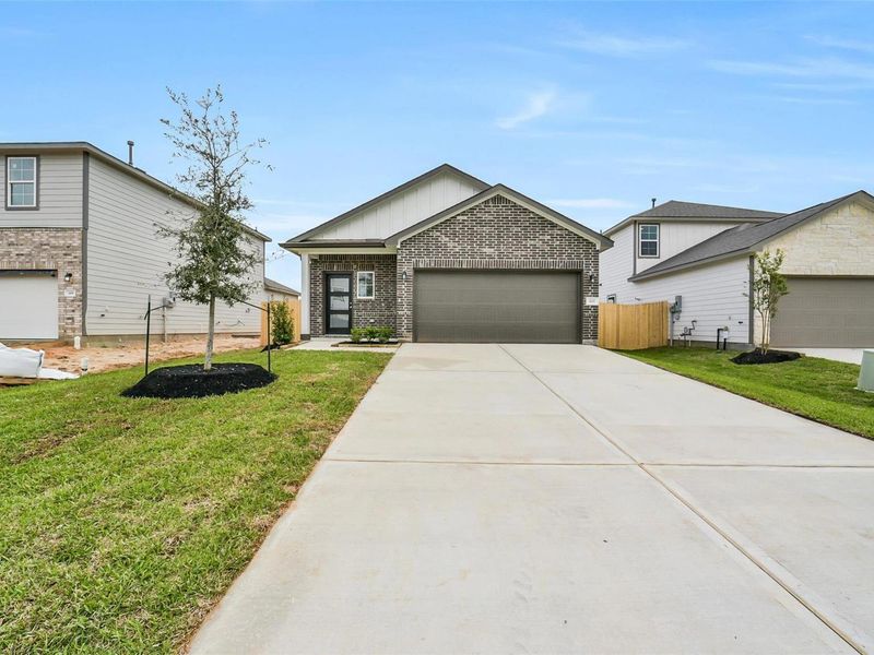 Presenting The Frio — Nestled in the charming community of Caney Creek Place! Designed with modern living in mind, this beautiful home offers open-concept comfort at its finest with 3 bedrooms, 2 bathrooms, and a spacious 2-car garage. The heart of the home features a seamless flow between the living, dining, and kitchen areas — perfect for both entertaining and everyday life. The kitchen shines with elegant white cabinetry, quartz countertops, and stainless steel appliances, creating a stylish and functional space. Retreat to your primary suite, complete with a generous walk-in closet and thoughtful design details for ultimate relaxation. Additional highlights include a ceiling fan in the family room, a garage door opener, and full sod with irrigation for a beautiful, low-maintenance yard. Your dream home is waiting — move in March 2026!