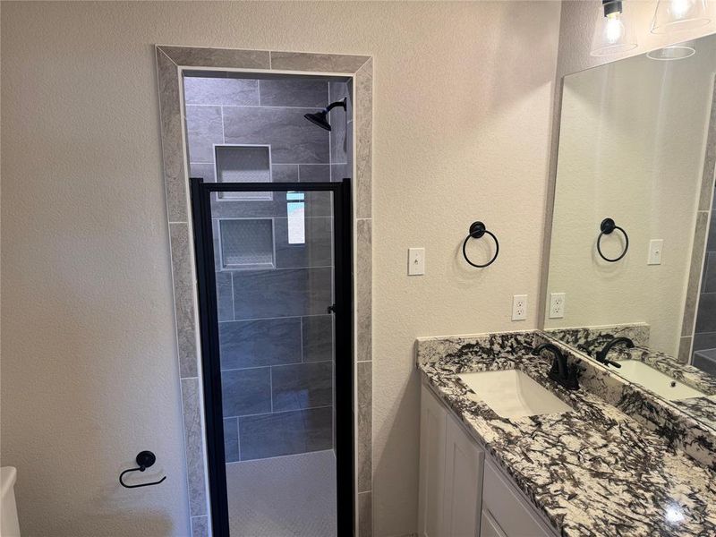 This is a new build located in a brand-new subdivision with NO HOA in Springtown ISD. This is a 3-bed 2-bath open floorplan home. The kitchen has custom painted cabinets, granite countertops throughout, island, and stainless-steel appliances. The master bath has double vanities and a walk-in shower. The closet is located in the master bedroom. There is custom tile throughout house and carpet in bedrooms. The laundry room is large with a door leading out to a carport. The back door leads to a large back yard. This is a must see in a quiet neighborhood.