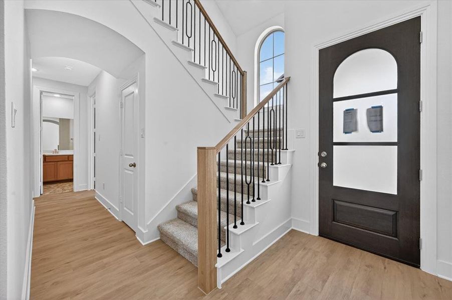 Welcome to this beautifully designed two-story home, offering both style and practicality. As you enter, you first step into the inviting dining area, which seamlessly flows into the open-concept kitchen. The kitchen connects to a spacious living room that leads to a cozy patio, perfect for outdoor relaxation. Off the kitchen, you'll find the luxurious primary suite, providing a private retreat with an ensuite bathroom. A 4th bedroom and convenient full bathroom add functionality to the main floor. The two-car garage offers ample storage and parking. Heading upstairs, you'll discover a versatile loft area, ideal for additional living space or a playroom. Bedrooms three and four are located on this floor and access to a full bathroom. The open-to-below design enhances the sense of space and connection throughout the home, making it perfect for modern living.