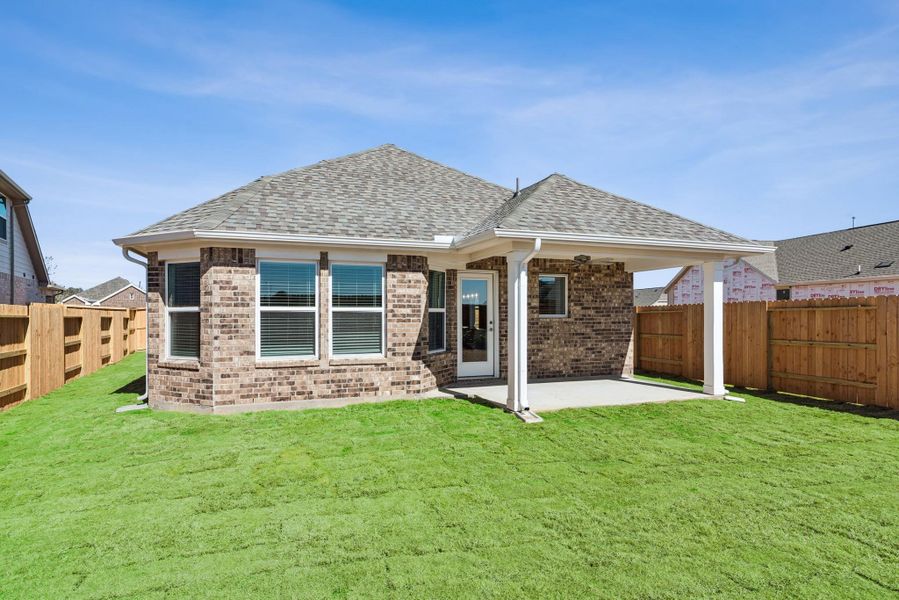 READY NOW! Welcome to the Magnolia plan in Wildrye, where modern upgrades meet a peaceful country feel and just minutes from HWY 290! This one story plan offers 3 bedrooms, 2 bathrooms, plus an additional garage storage! At 1,618 sq ft this open concept home offers a kitchen that features granite countertops and overlooks the spacious family and dining areas, perfect for everyday living and entertaining. The private owner’s suite features a beautiful bay window for additional space and natural light perfect for relaxation. Enjoy premium upgrades throughout including no carpet in the home, stainless steel appliances, four sided brick, a tankless water heater, garage door opener, blinds, full sprinkler system, and four-sided gutters all included. Schedule your showing today