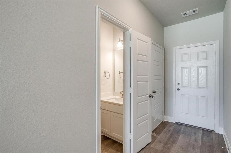 Upstairs, unwind in the private primary suite, complete with a double vanity, a large glass-enclosed shower, and a walk-in closet offering ample storage. The second floor also includes two additional bedrooms, a well-appointed shared bathroom, and a conveniently located utility room.