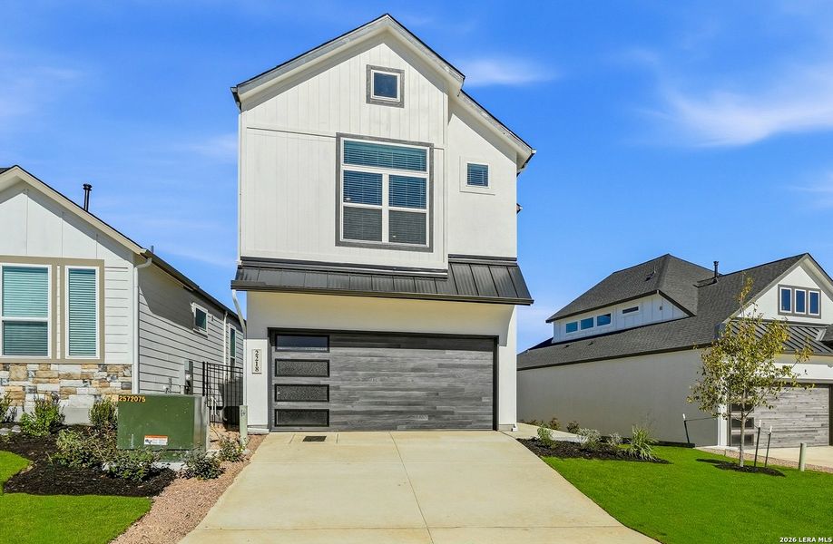 Move in Ready! The Apollo floorplan at Prominence offers 2,005 square feet of smart, modern design in a distinctive two-story layout tailored for today's lifestyle. With 3 bedrooms, 2.5 bathrooms, and a 2-car garage, this innovative home is perfect for buyers looking for a fresh take on functionality and flow-all within a thriving master-planned community. Featuring an upside-down living layout, the main living area, kitchen, and primary suite are located on the second floor, maximizing natural light and creating a bright, airy feel. An intimate second-floor patio off the kitchen extends the living space outdoors-ideal for quiet mornings or casual dining with a view. Downstairs, two secondary bedrooms, a full bathroom, and a spacious flex room offer the perfect setup for guests, teens, or a cozy lounge. A second small patio on the lower level creates a private outdoor nook with easy access to the backyard. With its unique design, optional upgrades, and energy-efficient construction, the Apollo floorplan delivers both comfort and character-perfect for buyers who want something a little different without compromising convenience. Tour the Apollo today and discover this thoughtfully designed home in Prominence's premier master-planned community.