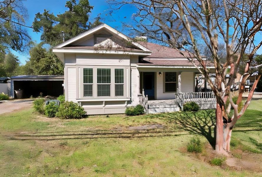 Welcome to Alba, Tx! Located 10 minutes or less from Legendary Lake Fork. This home is a super cute and full of charm,character and built with quality materials like they used back in the day. Lots of recent updates with new carpet in bedrooms too. This home features 10' ceilings and foam insulation to keep those utility bills reasonable. Home has been meticulously maintained with a wrap around corner porch and features 3 bedrooms, 2 bathrooms, tankless hot water heater and a 24' x 28' carport big enough for your boat and truck. Sitting on a corner lot in downtown Alba with all city services and no septic issues to cause you stress. Home has a fenced backyard to keep the kids and pets safe. Fireplaces in the living room and primary bedroom have been closed off, although there are gas outlets for a free standing fireplace in both rooms. Exterior features 8' x 25' front porch that wraps around to the 7' x 14 side porch and a 6' x 13' back porch. Buyer to verify any and all information.