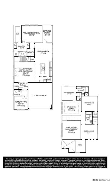 Welcoming side entry features 13-foot ceiling that leads to home office and family room. The family room boasts a wood mantel fireplace. Kitchen offers generous counter space, a 5-burner gas cooktop, corner walk-in pantry and inviting island with built-in seating space. Dining area with wall of windows just off the back patio. Primary suite includes bedroom with wall of windows. Dual vanities, glass-enclosed shower and large walk-in closet in primary bath. Game room, a guest suite with a full bath and additional bedrooms completes the second floor. Abundant closet space throughout. Covered backyard patio and 6-zone sprinkler system. Half bath just off two-car garage.