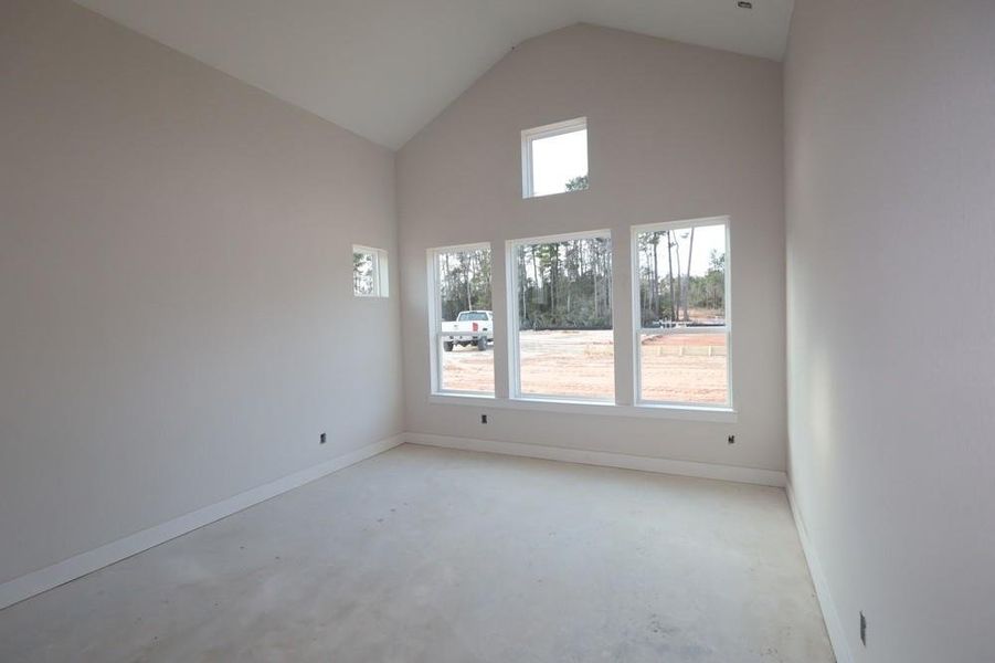 Welcome to the Magnolia plan in Montgomery, Texas. This exceptional one-story David Weekley home is nestled in the highly desirable community of Two Step Farm and thoughtfully designed for both everyday living and effortless entertaining. This spacious residence features three bedrooms, two and a half bathrooms, an enclosed study, and an expansive covered rear patio. From the entryway to the open family room, the home radiates warmth and natural light. The chef's kitchen includes cabinets to the ceiling for ample storage, stainless steel appliances, a huge island and quartz countertops that offer generous prep space. Adjacent to the kitchen, the family room boasts 12-foot ceilings and walls of windows that create a bright and inviting space ideal for hosting. The Owner's Suite is a private retreat with a spa-inspired bath, complete with an Extended Super Shower and dual vanities. Open the eight-foot sliding glass doors to the oversized covered patio, perfect for outdoor living.
