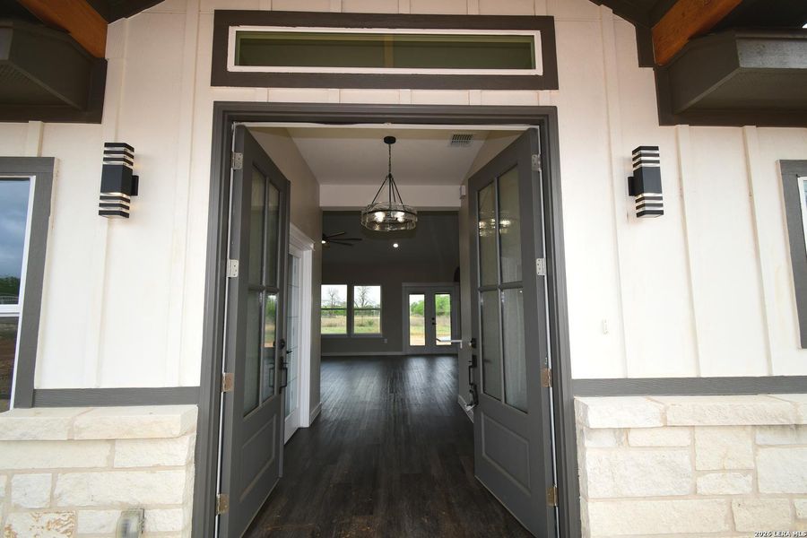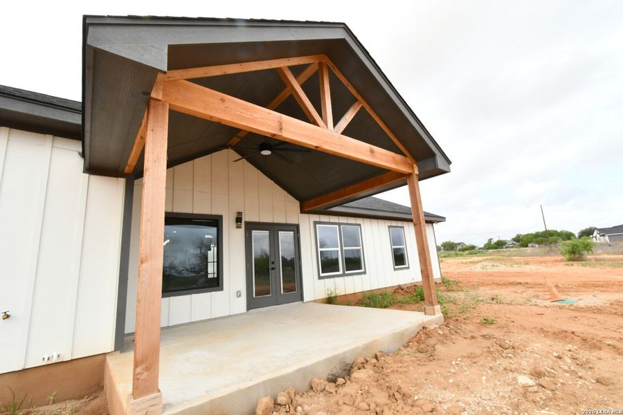 Builder incentives available on this beautifully designed ranch-style home! An inviting entrance with impressive double walnut doors opens into a thoughtfully crafted open-concept layout. The kitchen features a spacious breakfast bar, farmhouse sink, and custom soft-close cabinetry-perfect for entertaining and everyday living. The home showcases soaring ceilings accented by a stunning cedar beam, elegant quartz countertops, a dedicated coffee station with its own pot filler, and a natural gas stove with an additional pot filler for added convenience. Enjoy the freedom of no HOA while being just minutes from San Antonio and nearby city amenities, offering the perfect balance of peaceful country living and modern convenience. Situated on a quiet country road, this new community provides the best of both worlds-serene surroundings with easy access to everything you need.