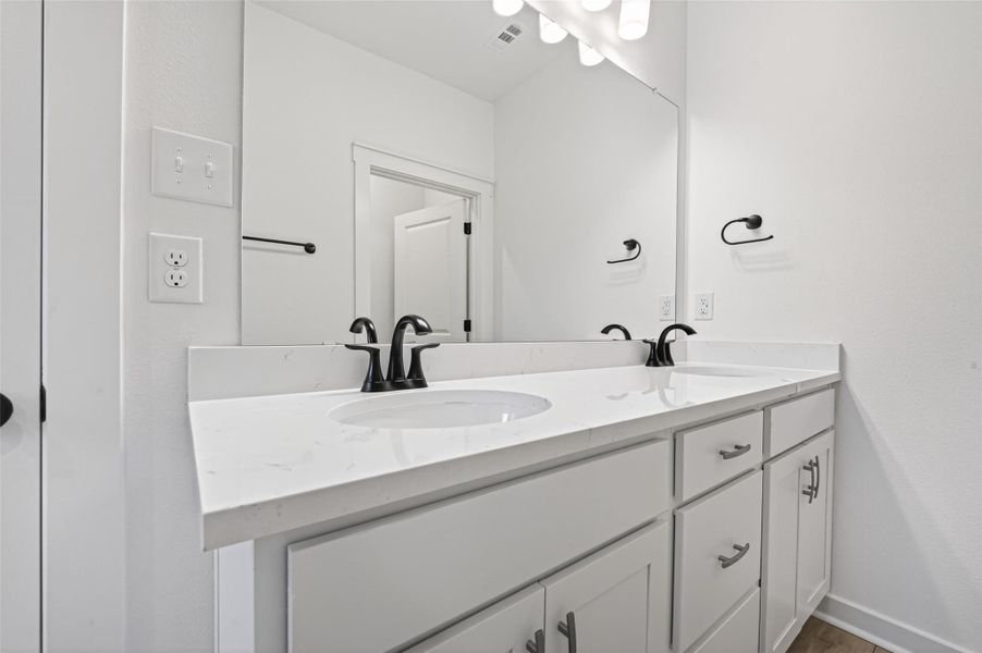 Welcome home to one of the community’s most sought-after floorplans. This impressive one-story, four-bedroom, two-bathroom residence combines modern style with an open, functional layout designed for everyday living and effortless entertaining. At the heart of the home, the kitchen truly stands out with a massive island and a generous peninsula, offering unmatched workspace, storage, and versatility. Whether you’re cooking, gathering, or hosting, this dream kitchen elevates every moment. The private primary suite offers a spacious retreat featuring a well-appointed bathroom with dual sinks and an expansive walk-in closet. Throughout the home, sleek matte black fixtures and recessed lighting create a clean, modern aesthetic. Step outside to a large, covered patio, perfect for unwinding while taking in the peaceful, nature-filled surroundings. Visti DSLD Homes and schedule your showings TODAY!!!