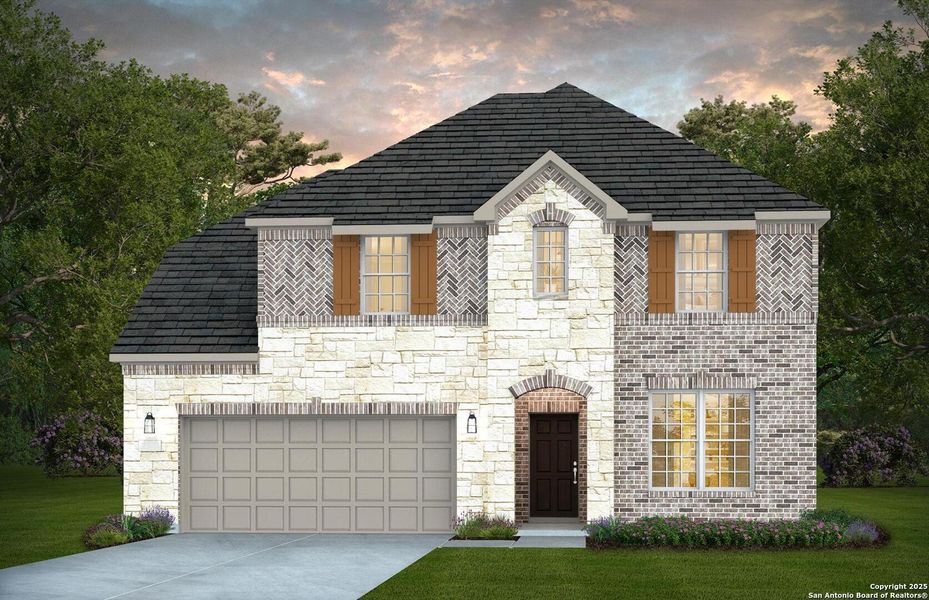 Available February 2026! The two-story Lexington is well suited to accommodate larger households. This multi-functional plan showcases a first-floor owner's suite, an outdoor covered patio, expansive great room and charming gourmet kitchen. Nearby flex space or an optional study provides ideal space for a home office or an additional private bedroom with full bath, perfect for hosting overnight guests.