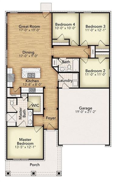 Estimated January 2026 completion! Owner financing available! Ask us about our Trade In Trade Up program, we can buy your home! Walking through the covered doorway, you will feel right at home in your new Basswood floor plan! This plan offers versatility to meet your family’s needs throughout its 1,656 square feet of livable space. A quick left turn from the foyer leads to the owner's suite which includes a spacious owner's bedroom, bathroom with double sinks and walk-in closet. The other three bedrooms sit in the back right corner of the home, opening to a private hallway off the main gathering space. They share a full bathroom that is tucked inside the opening of the hall allowing easy access for guests as well. With their close proximity and privacy at the end of the hall, the bedrooms could also convert to a playroom or office as your family grows and needs change. An oversized island makes the Basswood perfect for entertaining a crowd or controlling the chaos with a view all the way to the back of the room and small back patio from anywhere in the home. We would love to welcome you home to the Basswood!